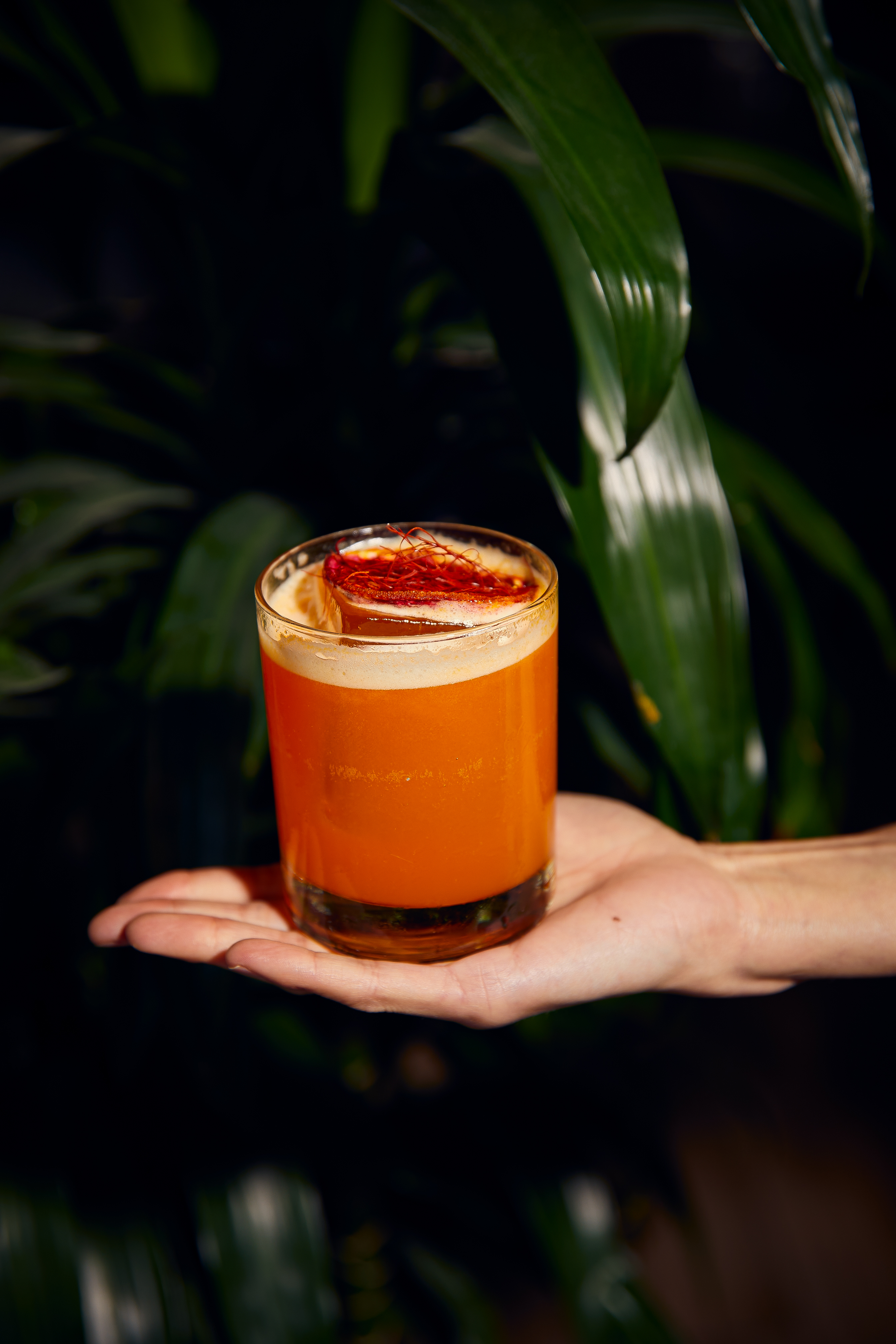 Scotch indien Amrut, Chivas 12 ans, sirop de safran, amers de gingembre et Angostura.